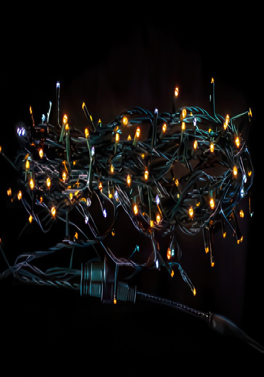 Cordão 200 leds sendo 160 leds fixos e 40 leds estrobo na cor do led, com fio verde, fiação de cobre, diâmetro de 2,2mm, comprimento de 20 metros e mais 0.50m de tomada, distância de 10cm de um led para outro, leds de 5cm, sistema de conexão com tomada macho e fêmea para união de até 05 conjuntos, uso externo, IP44, resistente a chuva, com resina na base dos leds, totalmente a prova d’água, 220v, potência 7w, com fonte retificadora retangular IP65.