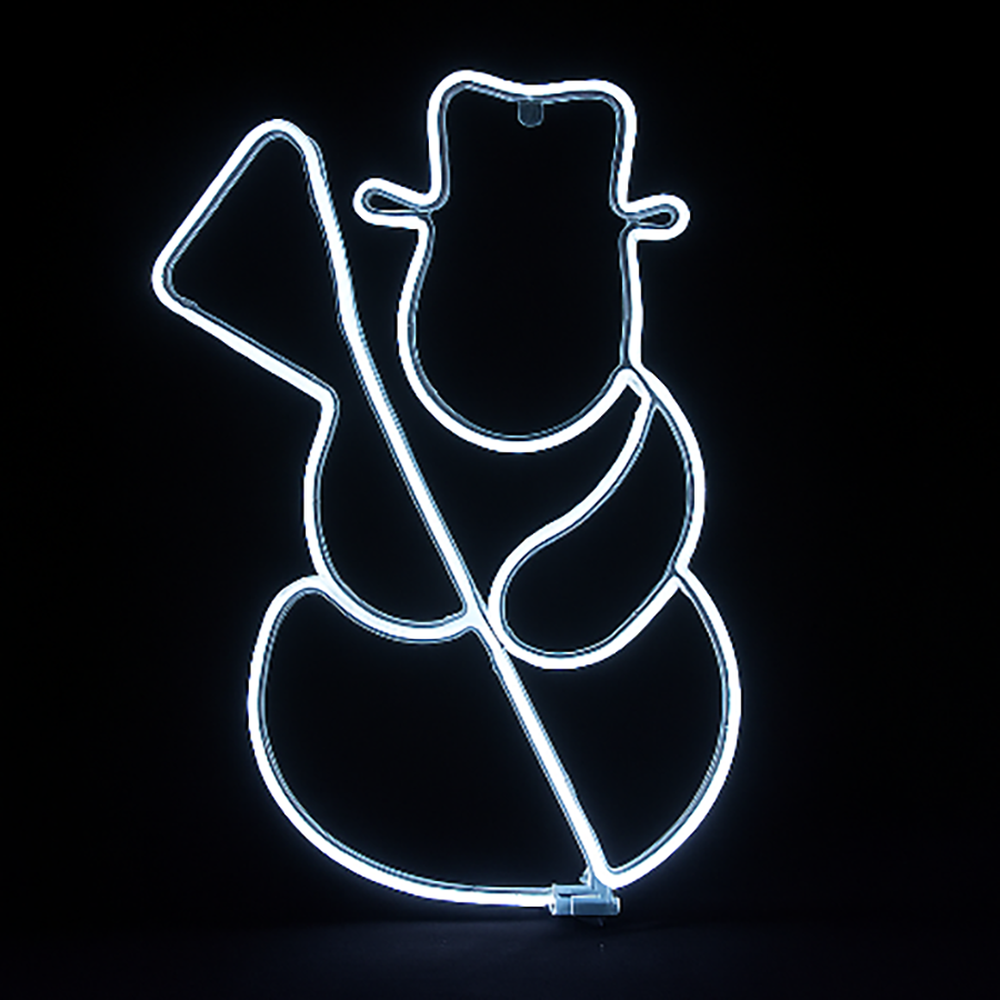 Elemento decorativo natalino em formato de boneco de neve, confeccionado em estrutura plástica rígida de alta resistência e acabamento translúcido. Iluminação por fita LED com fluxo luminoso uniforme. Dimensões aproximadas: 53 cm (altura) x 35 cm (largura). Produto indicado para aplicação externa, com grau de proteção IP44. Alimentação 220V.