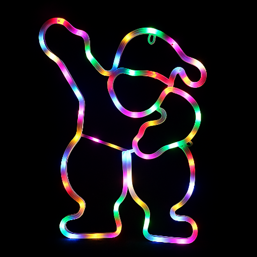 Elemento decorativo natalino em formato de Papai Noel, confeccionado em estrutura plástica rígida de alta resistência e acabamento translúcido. Iluminação por fita LED com fluxo luminoso uniforme. Dimensões aproximadas: 49 cm (altura) x 40 cm (largura). Produto indicado para aplicação externa, com grau de proteção IP44. Alimentação 220V.